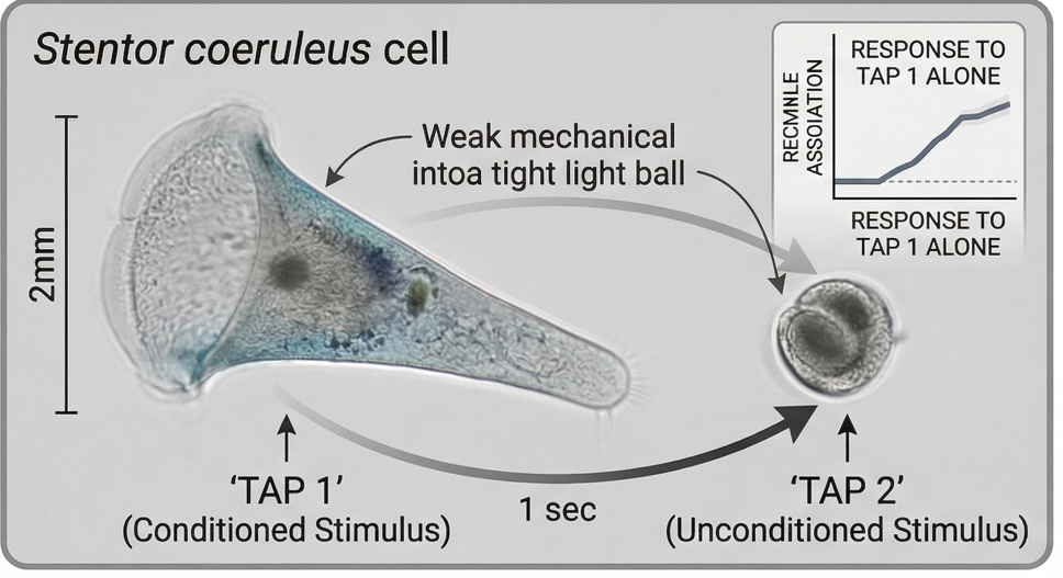 The experimental design was elegant. Stentor cells anchor themselves in a Petri dish and contract rapidly into a ball when disturbed by mechanical stimulation — a defensive response that costs them feeding time. The researchers introduced a weak tap (which alone rarely triggered contraction) paired one second before a stronger tap (which reliably did). After repeated pairings, the cells began showing enhanced contraction responses to the weak tap alone. Control experiments ruled out non-associative explanations such as sensitization or arousal, and parametric manipulation of the timing revealed a systematic dependence of learning on both inter-trial and inter-stimulus intervals.