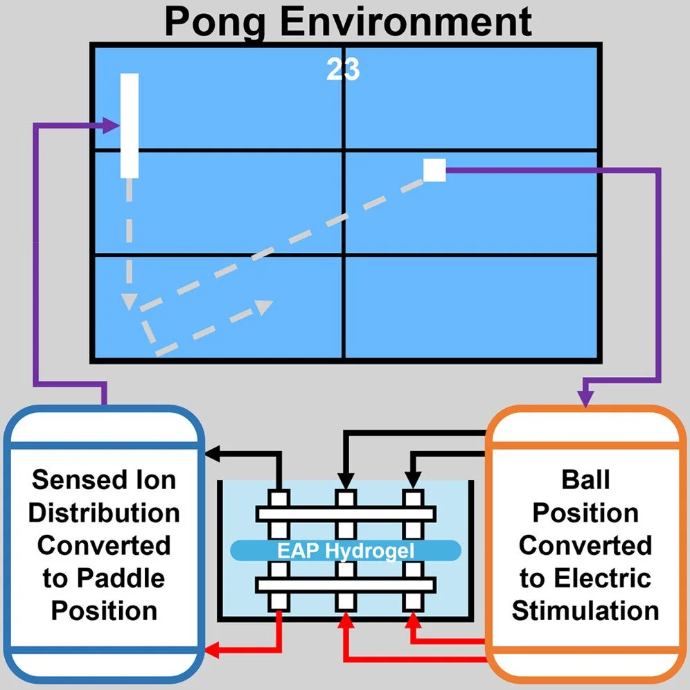 What makes the Cortical Labs achievement especially significant is not just the complexity of the task, but how it fits into a broader pattern. Consider that in August 2024, researchers at the University of Reading demonstrated that a simple polymer hydrogel — an electro-active “jelly” with no biological components whatsoever — could be interfaced with a game of Pong and show measurable improvement over time. Ions within the hydrogel’s polymer matrix moved in response to electrical stimulation, creating a form of emergent “memory” that resulted in longer rallies. The gel improved its accuracy by approximately 10 percent and reached peak performance in about 20 minutes.