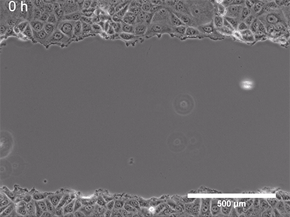They began with a simple in-vitro injury model: They grew a flat layer of MPCs in a dish, then made a "scratch" through the layer (Figure 3), creating a gap—a miniature wound. Over several hours, the cells naturally migrated into the gap to close it.